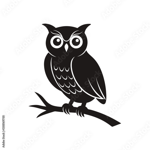 © Profullya, Fototapeta premium Owl Perched on Branch Silhouette