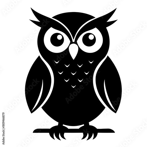 Fototapeta premium Owl Perched vector clean black silhouette design white background