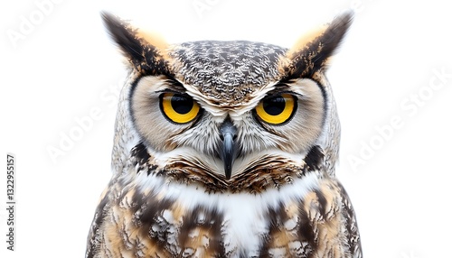 © Sobat, Fototapeta premium Owl portrait, intense gaze, white background, wildlife