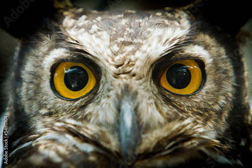 © Fotos 593, Fototapeta premium owl portrait staring at camera close up