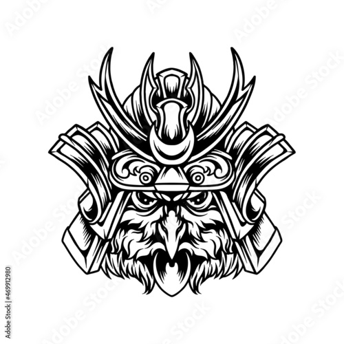© STR Graphs, Obraz premium Owl Samurai Mascot Silhouette