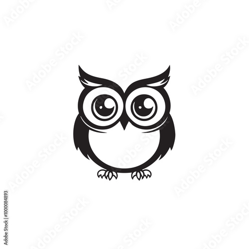 © Golekcuanbuos, Naklejka premium Owl silhouette, cartoon cute owl sitting on branch switch Board Wall decal Sticker, wall art decor, kids wall artwork isolated on white background, Wall decals and minimalist poster design, owl icon,