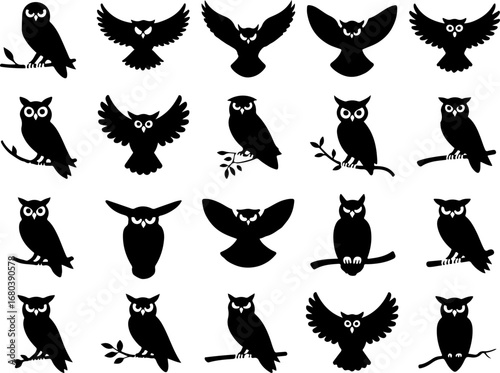 © art king, Naklejka premium Owl Silhouette Icon Collection Vector Bundle