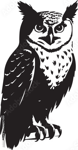 © Irfan Vector , Fototapeta premium Owl silhouette vector black and white icon on white background