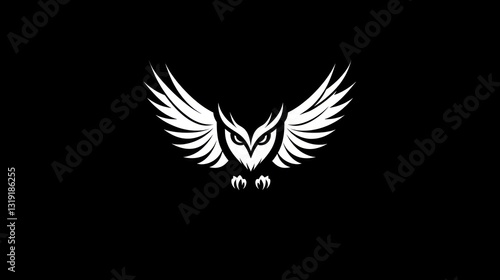 © Mufarokah, Obraz premium Owl silhouette, wings spread, black background. Design element