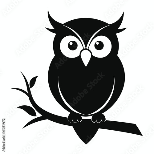© Mithun, Fototapeta premium Owl sitting on a tree branch cartoon illustration at night