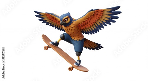 © Indah, Obraz premium Owl skateboarding cartoon illustration