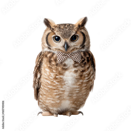 Fototapeta premium Owl Wearing Bow Tie Against White Background