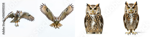 © AC's Inspired Images, Naklejka premium Owl Wild Life Animal Set, Isolated on A White Background