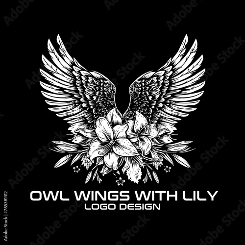Obraz premium Owl Wings With Lily Vector Logo Design