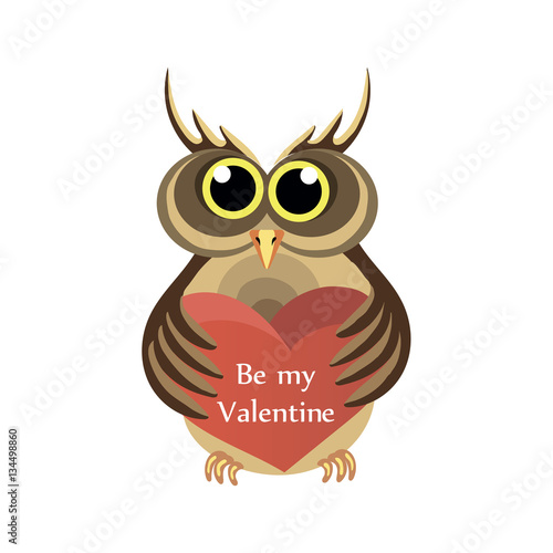 © abramova, Fototapeta premium Owl with a heart. Style flat.- vector illustration
