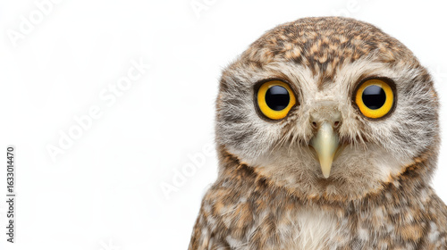 © Nattapol, Fototapeta premium Owl with bright yellow eyes looking curious and alert