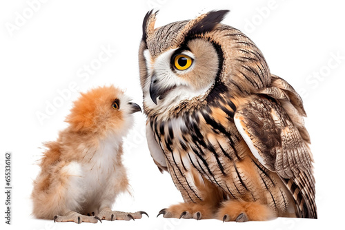 © Yeti Studio, Fototapeta premium Owl with its owlet, cut out