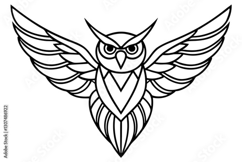 Fototapeta premium Owl with Symmetrical Wings – Modern Line Art Vector for Wildlife and Nature...