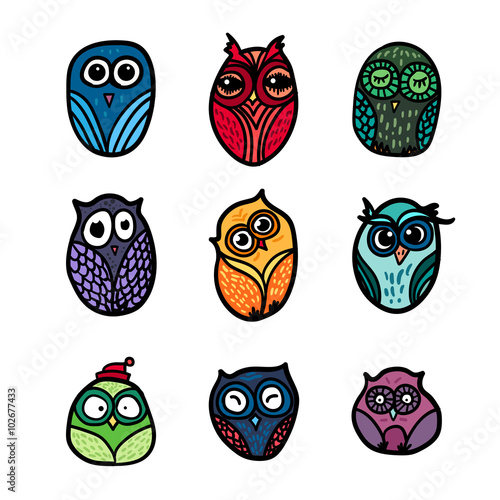 Fototapeta premium Owls hand drawn set