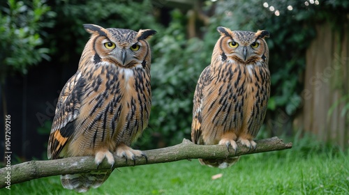 © Coffee Cafe Lover, Fototapeta premium Owls Perched on Branches in a Zoo Environment