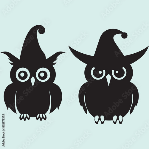 Fototapeta premium Owls Wearing Halloween Witch Hat Silhouette Vector Design