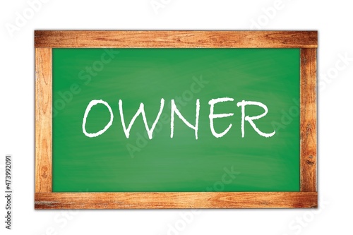Fototapeta premium OWNER text written on green school board.