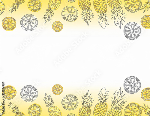 © Monika, Fototapeta premium Owocowe tło z ananasami i cytrusami. Rysunek, obramowanie