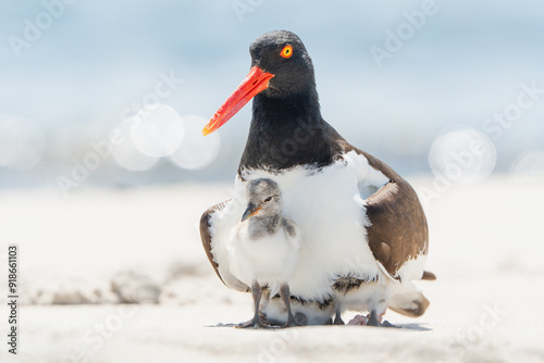 Obraz premium Oystercatcher and her chicks