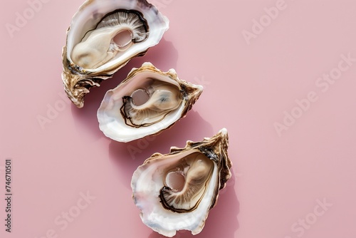 © World of AI, Naklejka premium oysters pattern on a pastel mauve background, flat lay