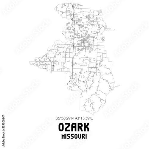 © Rezona, Obraz premium Ozark Missouri. US street map with black and white lines.