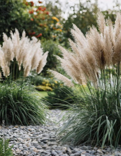 Obraz premium Ozdobna kwitnąca trawa pampasowa w ogrodzie