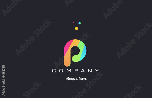 © dragomirescu, Naklejka premium p colored rainbow creative colors alphabet letter logo icon