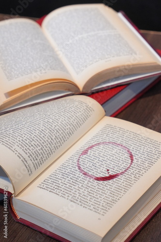 © ErnestoAriel, Obraz premium páginas de libro y vino tinto