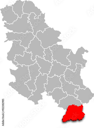 Naklejka premium pčinja district map ADMINISTRATIVE DIVISIONS of SERBIA 3d isometric map