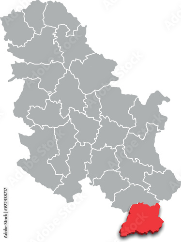 Obraz premium pčinja district map ADMINISTRATIVE DIVISIONS of SERBIA 3d isometric map
