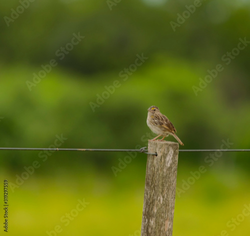 © ClauZerr, Fototapeta premium Pájaro Gris posado en poste de alambrado