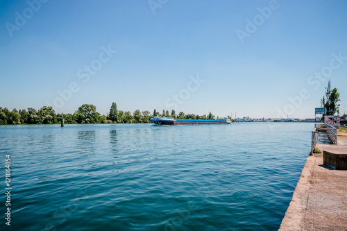 © Gerald Villena, Naklejka premium Péniche entrant dans la Saône au niveau du point de confluence à Lyon