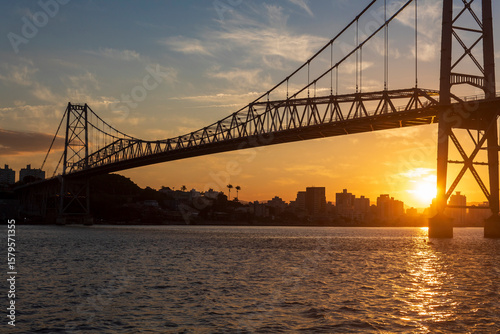 © Fotos GE, Obraz premium pôr do sol em Florianópolis Santa Catarina Brasil e a ponte Hercílio Luz Florianopolis