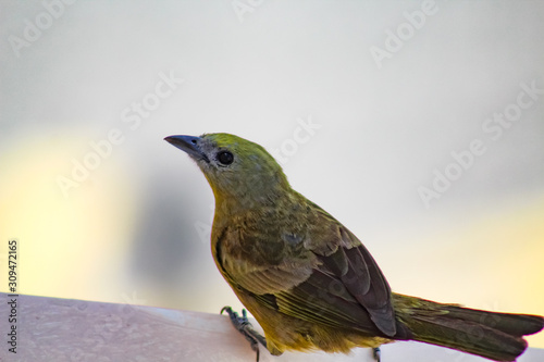 © Fotos GE, Fototapeta premium Pássaro verde com fundo branco