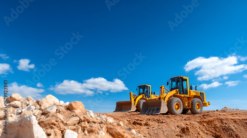 © THIBNH, Obraz premium p3685236 191 Two heavy duty wheel loaders, isolated for design and available for rent for various projects. Construction equipment for earthmoving. 28709217 1