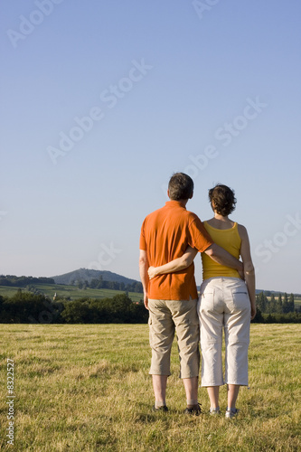 © ArtmannWitte, Fototapeta premium Paar steht Arm in Arm in Wiese