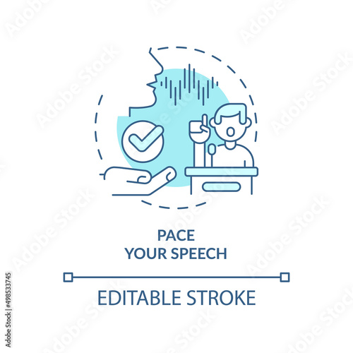 © IMG visuals icons, Fototapeta premium Pace your speech turquoise concept icon. Practice talking. Step to charisma abstract idea thin line illustration. Isolated outline drawing. Editable stroke. Arial, Myriad Pro-Bold fonts used