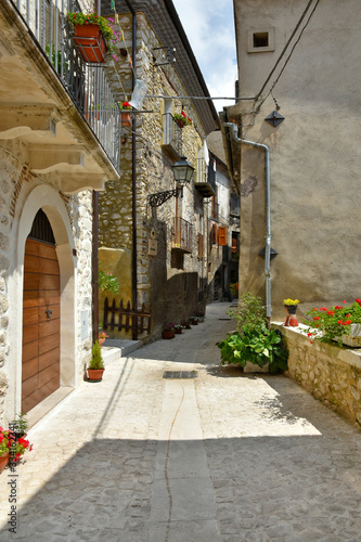© Giambattista, Fototapeta premium Pacentro, Włochy. Wąska uliczka między starymi domami średniowiecznej wioski