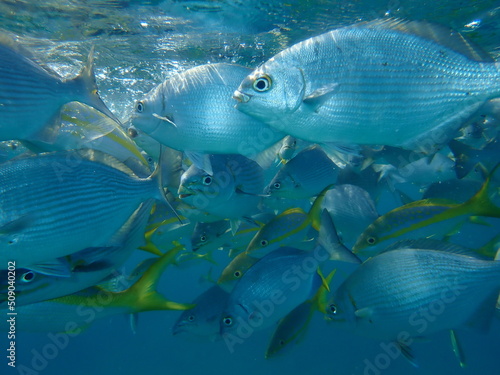 © Alexey, Naklejka premium Pacific drummer or Bermuda chub or grey drummer, Pacific chub (Kyphosus sectatrix) undersea, Atlantic Ocean, Cuba, Varadero
