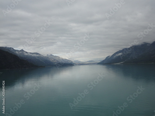 © Justin, Obraz premium Pacific Ocean fading off to the Horizon between rolling mountains with a cloudy sky