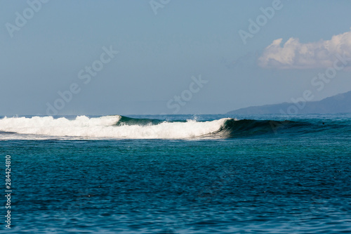 Fototapeta premium Pacific Ocean, French Polynesia, Society Islands, Huahine. Waves breaking on deep blue ocean.