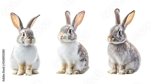 Fototapeta premium Pack Bouncy Bunny set in Different Poses Against Transparent Background for...