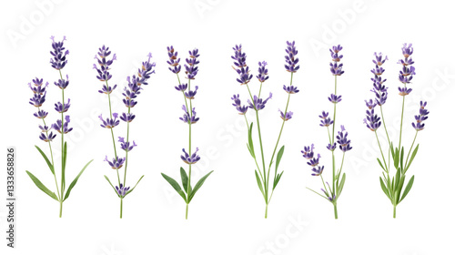 Naklejka premium Pack Lavender Set Against Transparent Background for Floral Branding,...