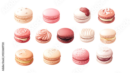 Obraz premium Pack Macaron Set on Transparent Background for Pastry Illustrations, Bakery Branding, and Dessert Designs