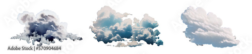Obraz premium Pack of 3 cutout clean white clouds manga anime watercolor style with alpha transparent background png