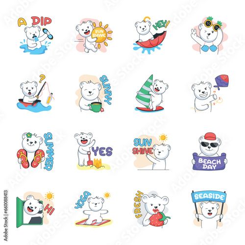 © Prosymbols, Fototapeta premium Pack of Summer Holiday Flat Stickers