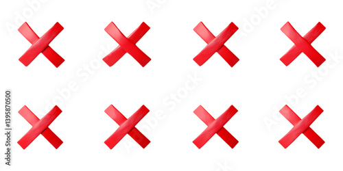 Obraz premium Pack Red X Mark Symbol Set in Different Poses Against Transparent Background for Warning Signs, UI Design, or Error Indicators