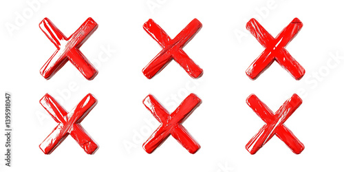Obraz premium Pack Red X Mark Symbol Set in Different Poses Against Transparent Background for Warning Signs, UI Design, or Error Indicators
