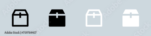 Obraz premium Package icon set in black and white. Shipping box signs vector illustration.